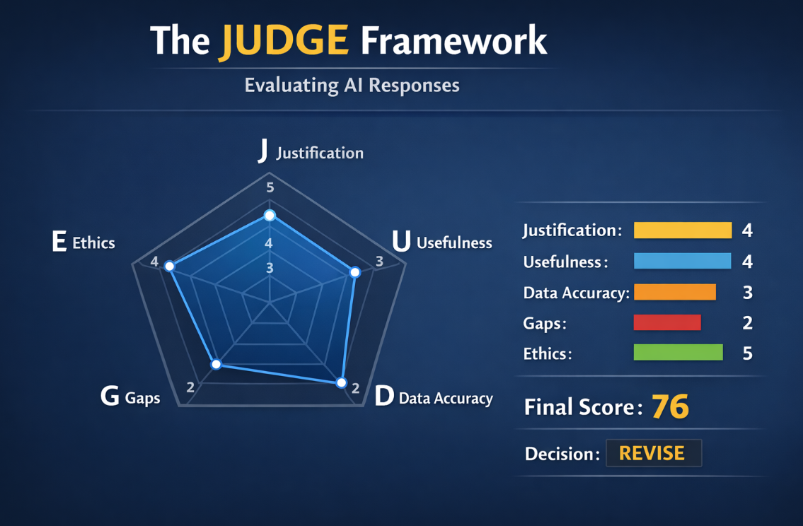 JUDGE: A structured framework for evaluating AI-generated responses before they are used in business, education, research, or decision-making.